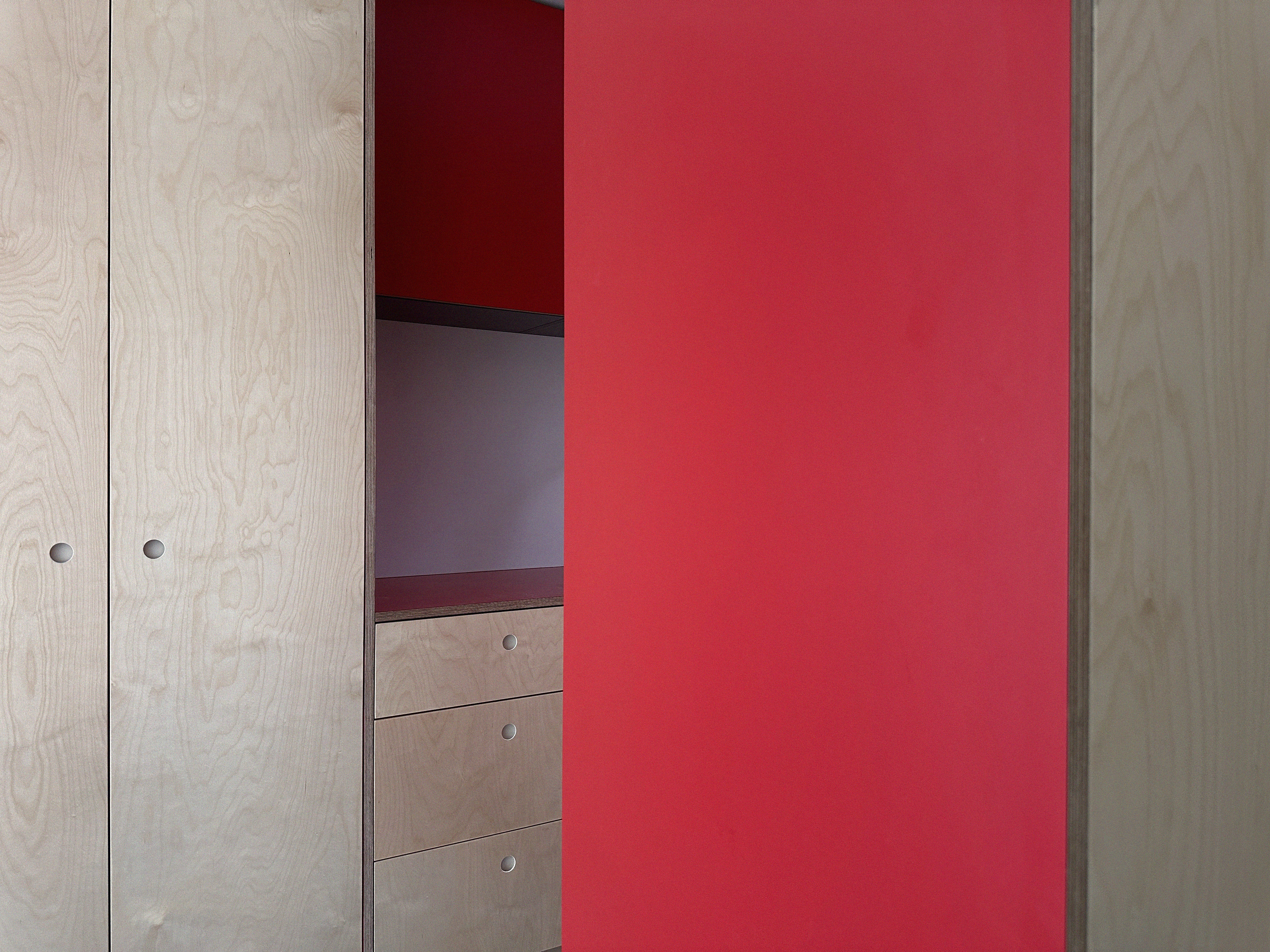 This private apartment in Chengde Township blends modernist principles with experimental elements, expressing rhythm and emotion through pure, rational forms. Solid colors dominate large surfaces like abstract shapes in a painting, while bold hues harmonize with precise square structures that provide concealed storage throughout.